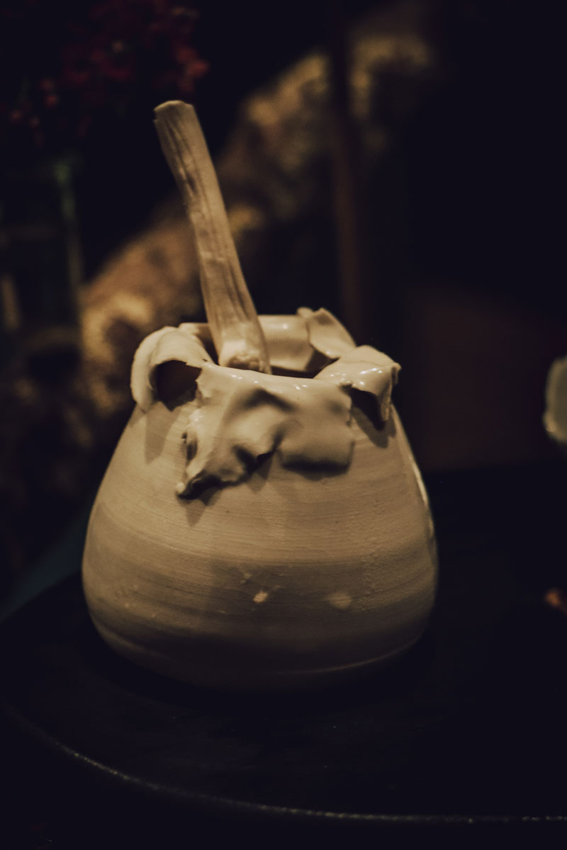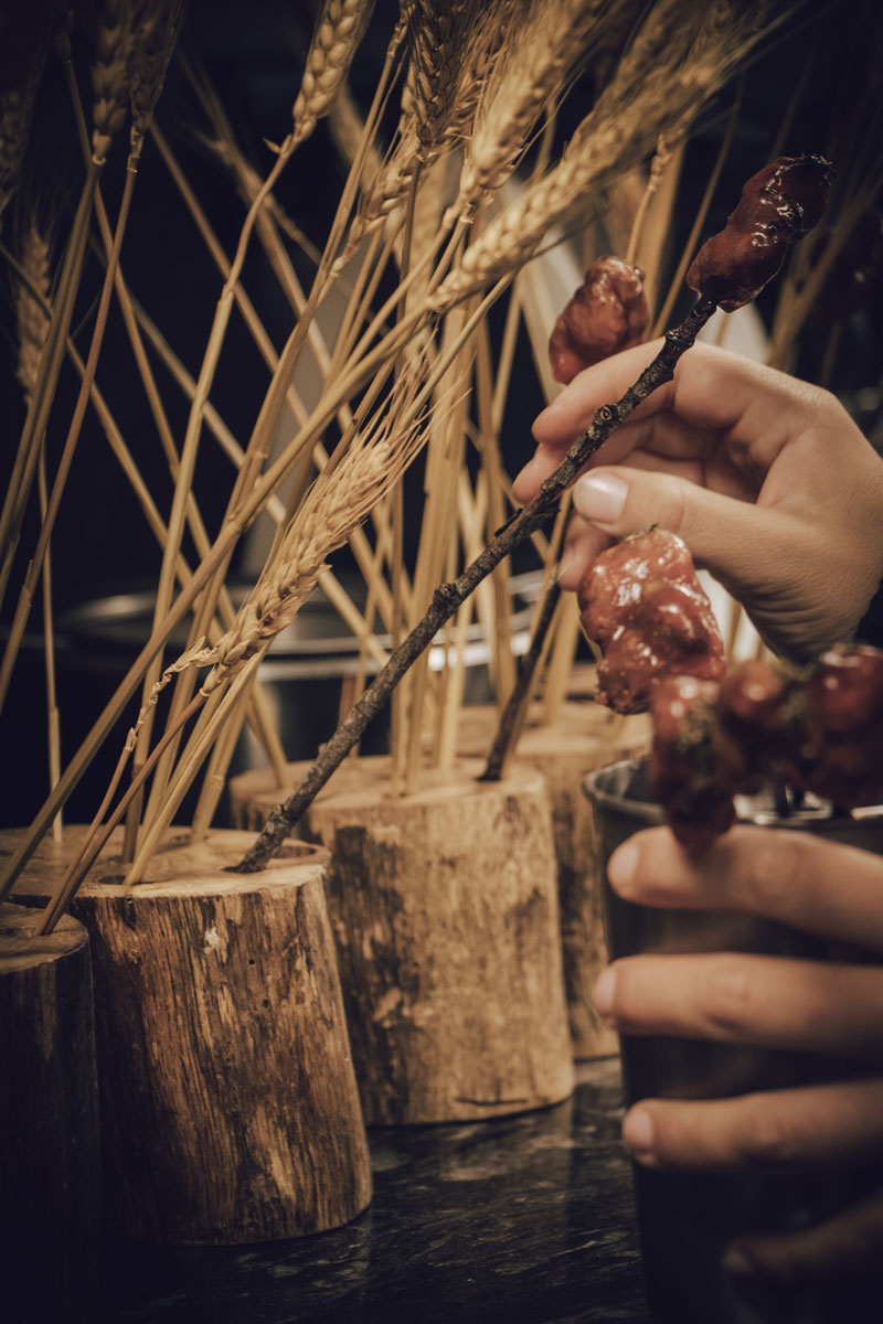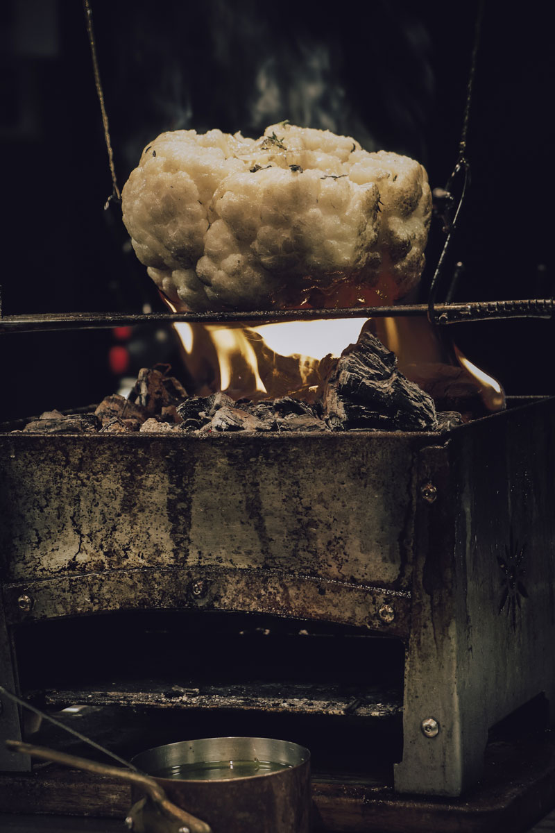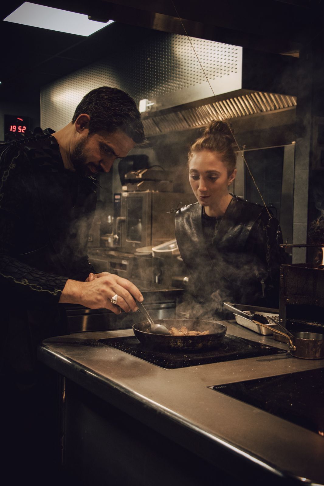 Le projet est né d’une connexion profonde du chef à la nature, à sa région, à la terre. Locavore convaincu, il source tous ses produits jusqu’à 250 km maximum, le plus loin étant, le Léman. Il est attaché à nos forêts alentour et sa cuisine en est l’hommage et le reflet. Dans son établissement du vieux Lyon, fermé définitivement en juin 2024, il accompagnait déjà ses convives aux plus près de leurs émotions personnelles à travers une immersion gustative, sonore et lumineuse, pensée autour des 4 éléments et des 5 sens. Il se questionne déjà à aller plus loin et souhaite repenser entièrement “La Table”, au sens littéral, et construit pendant 3 années de créativité ce projet fou : Les tenues sont pensées comme des habits de chasseurs cueilleurs des temps modernes, les fauteuils réalisés sur mesure comme des cocons vivants et en mouvement, les murs d’écorce comme les arbres qui respirent et des créations culinaires au coeur du vivant.