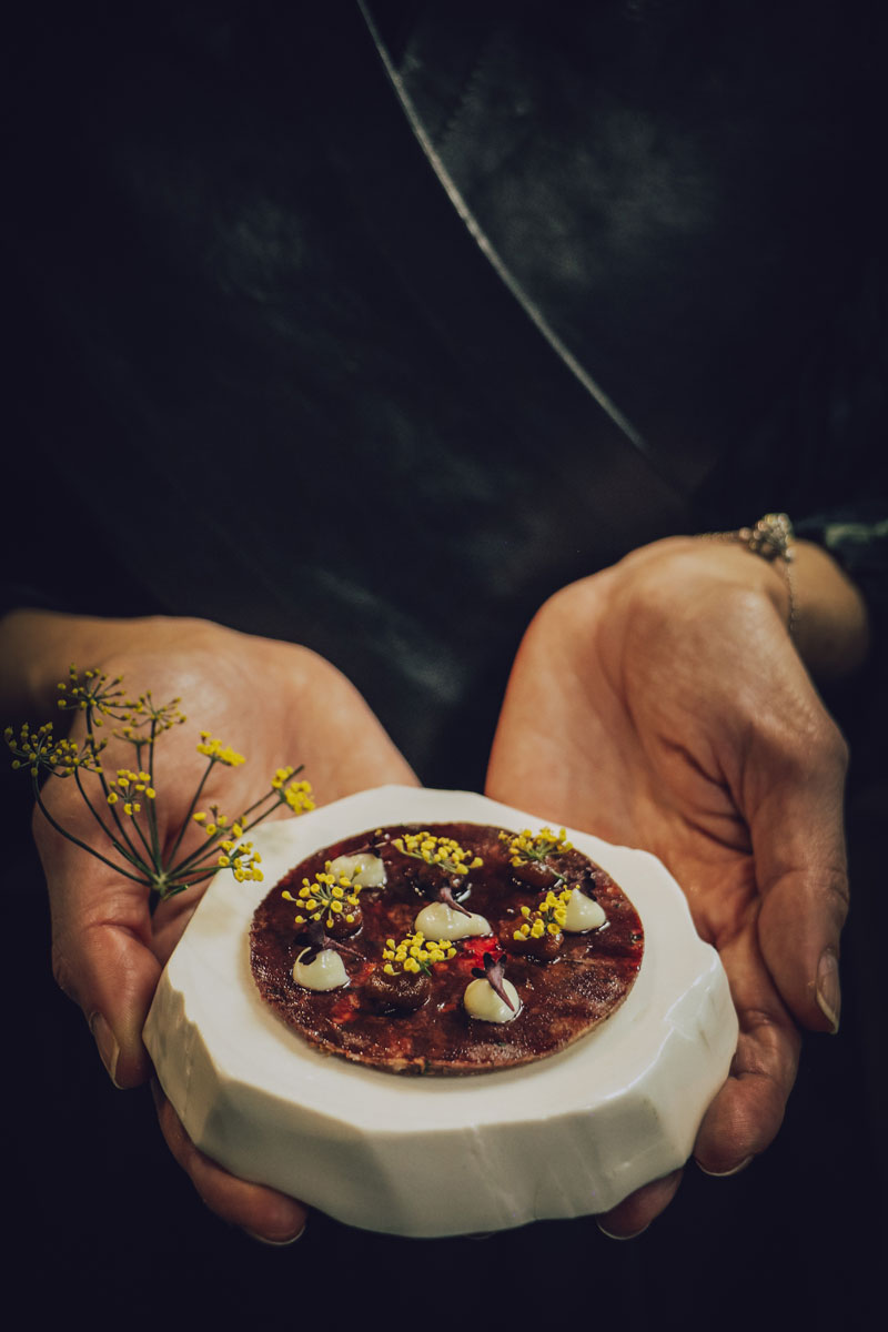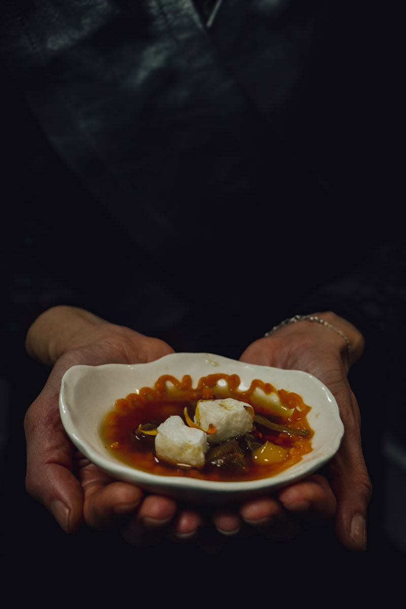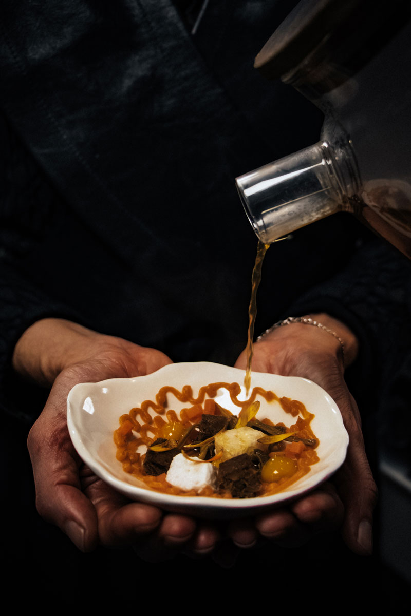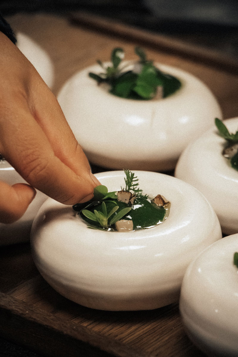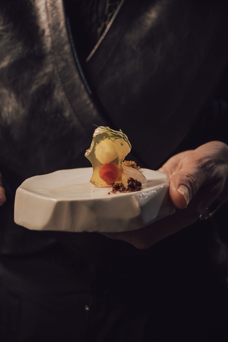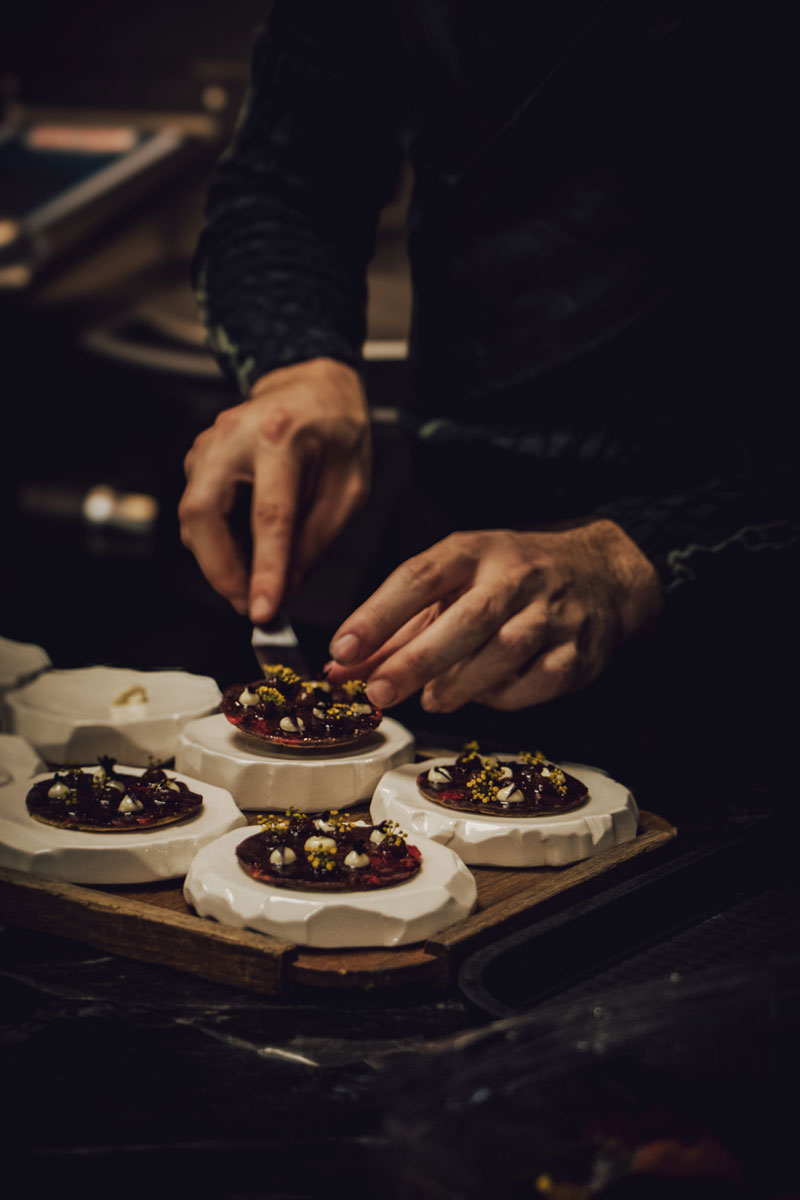 Sa démarche est une proposition pour donner un autre regard sur la gastronomie et changer le prisme sur la manière d’envisager et vivre un dîner au restaurant : un moment à la fois artistique, humain et profondément personnel.